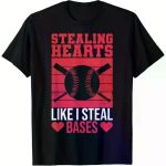 Kid'S Fashion T-Shirt with Funny Baseball Valentines Stealing Hearts Like I Steal Bases Print. 100% Cotton