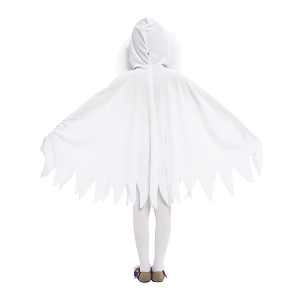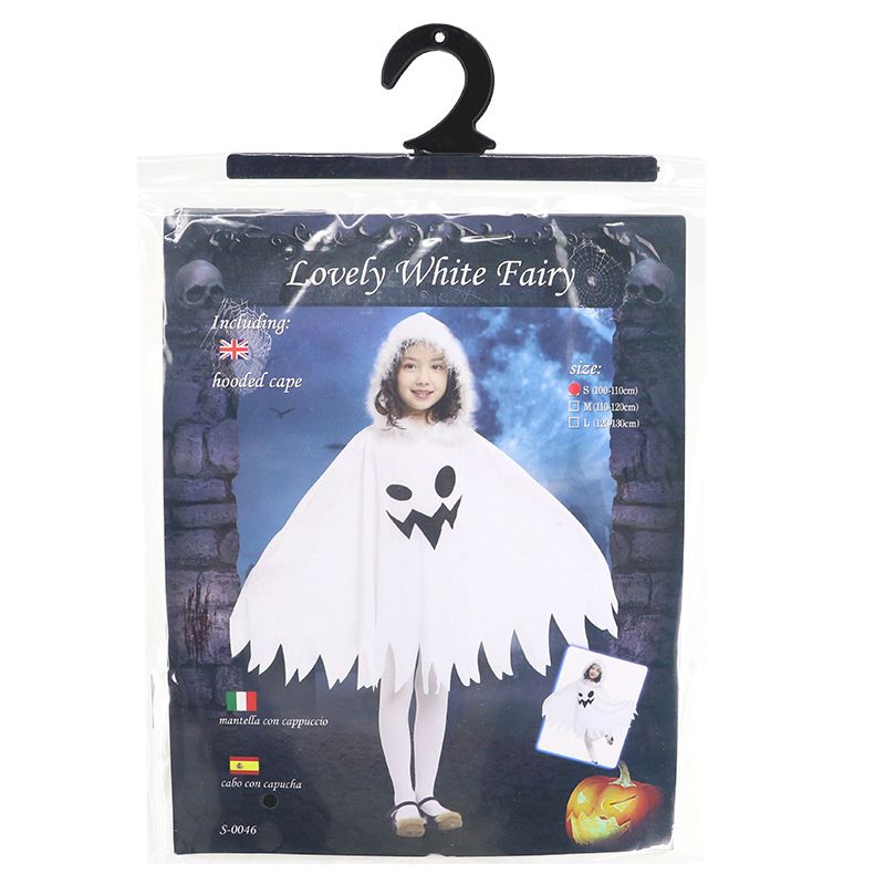 <br>Girls white ghost costume included: hooded cape (Leggings not included)